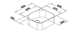 Decription: Undermount bowl 3.5" basket strainer waste and overflow.Fixing Kit 212 330 included.Bowl depth: 190mmCabinet Width minimum!!: 60cmCut out size: Template ProvidedCorner Radius: 80mmRequires Deep Work Top