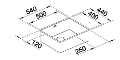 Decription: Undermount Bowl with 3.5" basket strainer waste and overflow.Fixing Kit 212 330 Included.Bowl depth: 175mmCabinet width minimum: 60cmCut out size: 500 x 400Sink Pack Price Includes Blancoeye Tap.