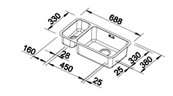 Decription: Undermount bowls with 3.5" basket strainer wastes and overflow.Bowl depth: 175/130mmCabinet width minimum: 80cmCut Out size: Template providedCorner Radius: 35mm